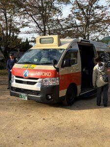 運行事業者は広島交通㈱で使用車両はキャラバン(12人乗り)。